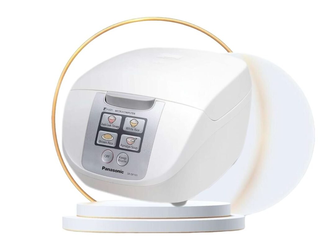 Panasonic Rice Cooker 10 Cup is a simple Japanese rice cooker with a larger 10-cup capacity. It uses microcomputer fuzzy logic to adjust cooking based on the amount of rice, which helps give more consistent results than basic one-switch models.